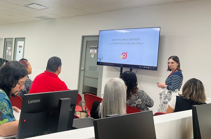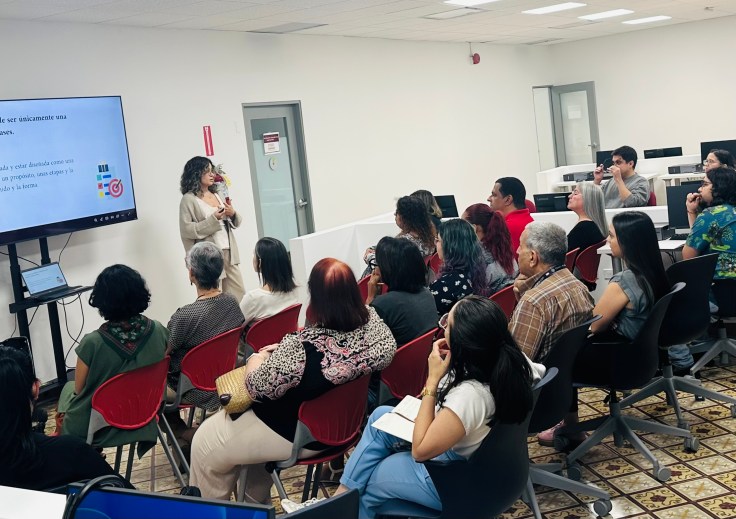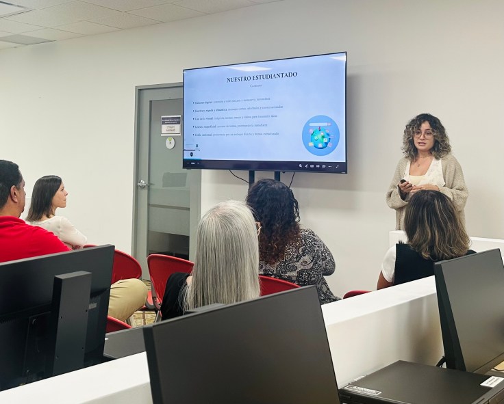 Posteriormente, la Profa. Adriana López Berríos, especialista en inglés, ofreció la introducción, destacando el contexto comunicativo del estudiantado y los objetivos de mejora que se buscan alcanzar. Luego, la Dra. Moraima Mundo Ríos, especialista en español, compartió recomendaciones sobre cómo redactar instrucciones claras y precisas.
